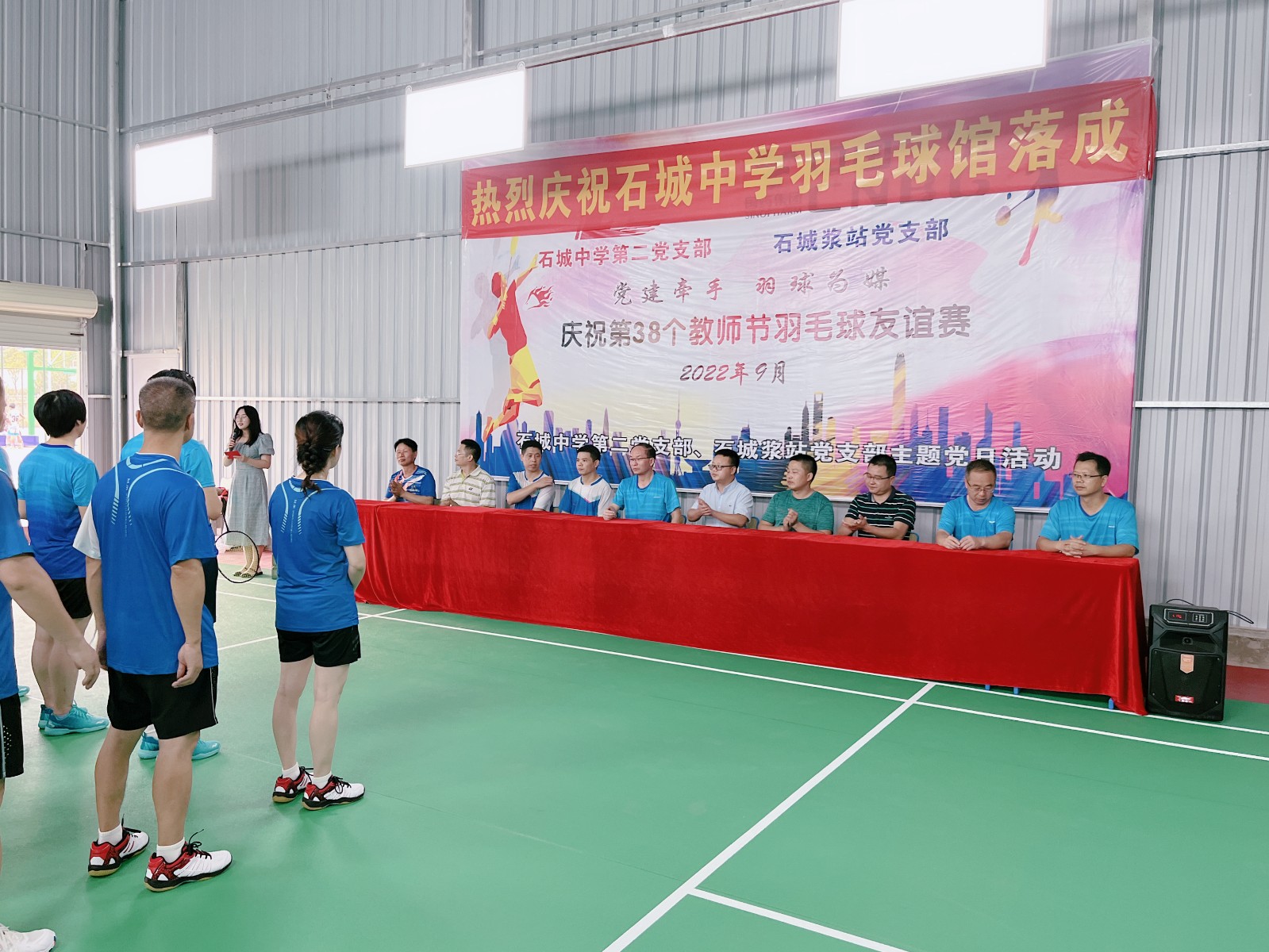 下午三點(diǎn),20多位參賽運(yùn)動(dòng)員以飽滿的精神狀態(tài),列隊(duì)來(lái)到石城中學(xué)羽毛球館,在石城漿站黨支部書(shū)記李云和石城中學(xué)黨委書(shū)記、校長(zhǎng)胡水波的共同宣布下,活動(dòng)拉開(kāi)了序幕。