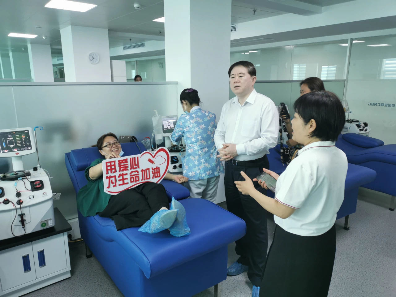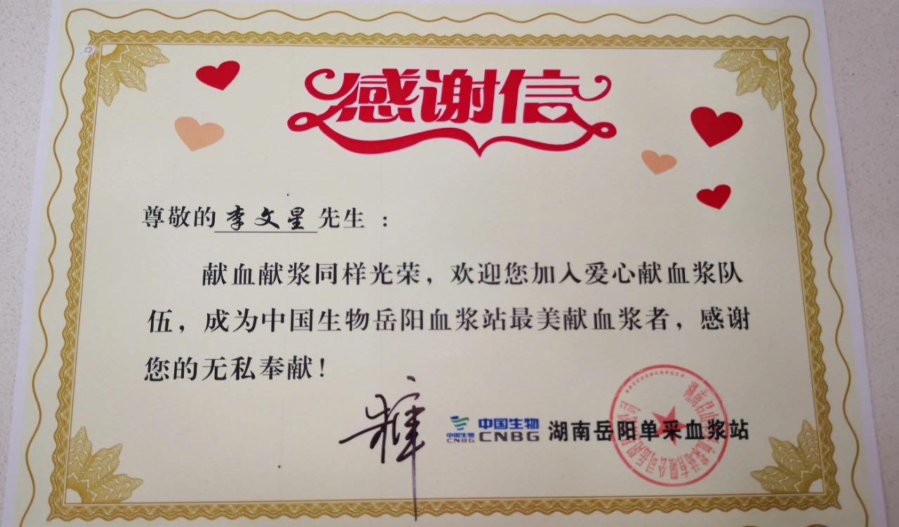 6月12日是中國(guó)生物岳陽(yáng)血漿站獲得《單采血漿許可證》開(kāi)業(yè)的日子。在這個(gè)特殊的日子,在岳陽(yáng)血漿站新建成的漂亮大廳里,朱京津遇見(jiàn)了岳陽(yáng)血漿站開(kāi)業(yè)的首位獻(xiàn)血漿志愿者。他代表中國(guó)生物向其無(wú)私奉獻(xiàn)表示感謝,贊賞他們用實(shí)際行動(dòng)踐行了獻(xiàn)血獻(xiàn)漿同樣光榮。