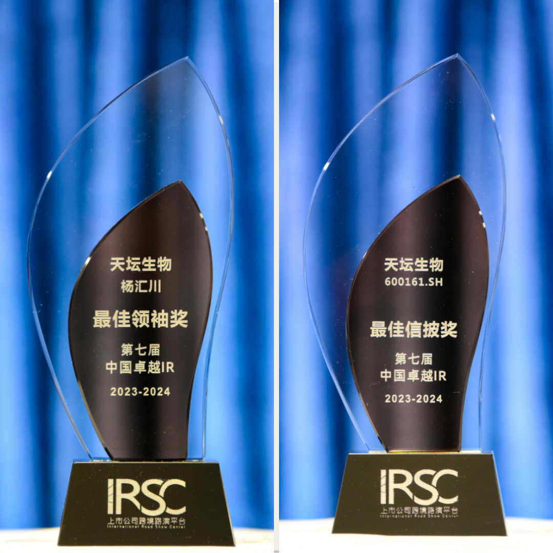 天壇生物董事長楊匯川榮獲“最佳領(lǐng)袖獎”,天壇生物榮獲“最佳信披獎”。