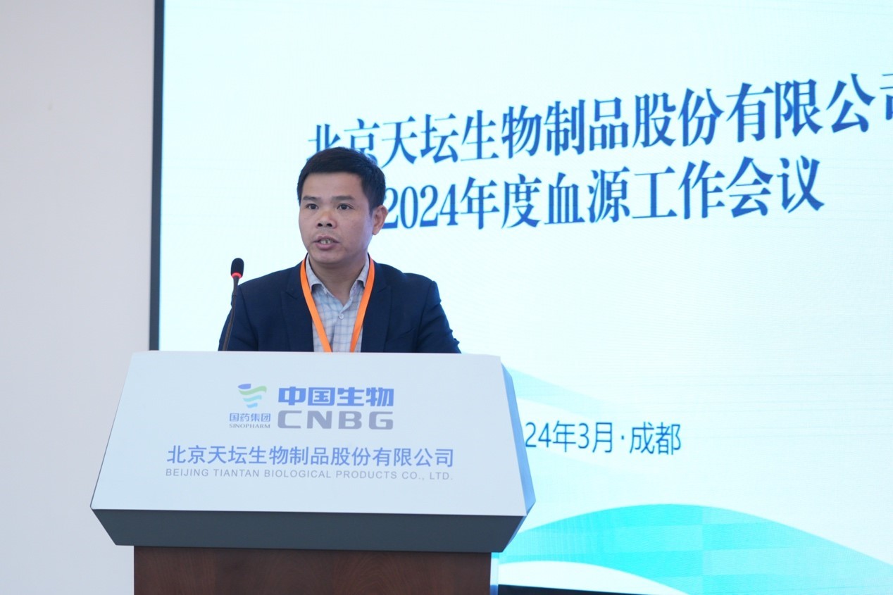 3月5日,天壇生物在成都召開2024年度血源工作會。天壇生物總經(jīng)理付道興,副總經(jīng)理、血源管理中心總經(jīng)理劉亞娜,財(cái)務(wù)總監(jiān)、血源管理中心財(cái)務(wù)總監(jiān)王虹青,血源管理中心班子成員出席會議,會議由血源管理中心副總經(jīng)理謝勇主持。