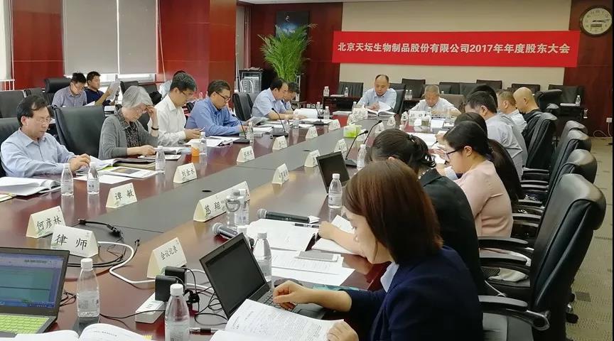 5月22日,北京天壇生物制品股份有限公司召開2017年年度股東大會(huì)。公司副董事長(zhǎng)楊匯川先生主持會(huì)議。會(huì)上,公司與各位股東及授權(quán)代表就有關(guān)議案進(jìn)行審議表決,并圍繞血液制品行業(yè)情況、公司經(jīng)營(yíng)現(xiàn)狀、組織架構(gòu)調(diào)整等內(nèi)容進(jìn)行了充分溝通與交流。