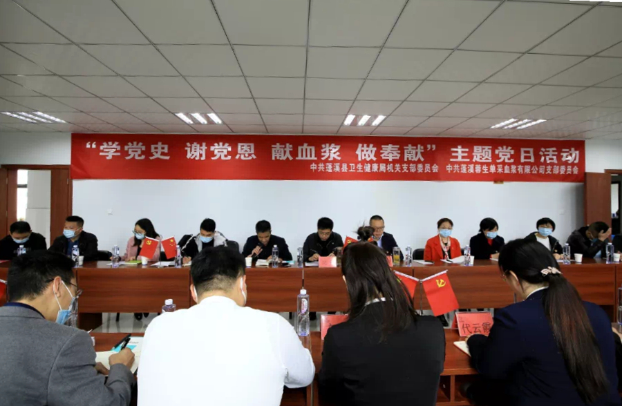 為紀(jì)念中國(guó)共產(chǎn)黨建黨100周年,充分發(fā)揮黨員先鋒模范作用。4月9日上午,蓬溪縣衛(wèi)健局黨組書記、局長(zhǎng)張啟先帶領(lǐng)縣局40余名黨員干部來到中國(guó)生物蓬溪血漿站開展“學(xué)黨史、謝黨恩、獻(xiàn)血漿、做奉獻(xiàn)”主題黨日活動(dòng)。