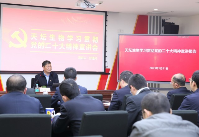 黨的二十大勝利召開后,天壇生物黨委堅持面向基層,緊密結(jié)合廣大黨員干部職工思想實際和工作實際進(jìn)行多形式、分層次、全覆蓋的宣講,緊密結(jié)合天壇生物“十四五”戰(zhàn)略規(guī)劃目標(biāo)和重點工作任務(wù),找準(zhǔn)貫徹黨的二十大精神的著力點,引導(dǎo)黨員干部職工在思想認(rèn)識上形成共識,在真抓實干上形成合力,全力沖刺重點工作目標(biāo),踔厲奮發(fā)、勇毅前行、團(tuán)結(jié)奮斗,譜寫天壇生物高質(zhì)量發(fā)展新篇章,為中國血液制品行業(yè)發(fā)展和健康中國建設(shè)貢獻(xiàn)力量。