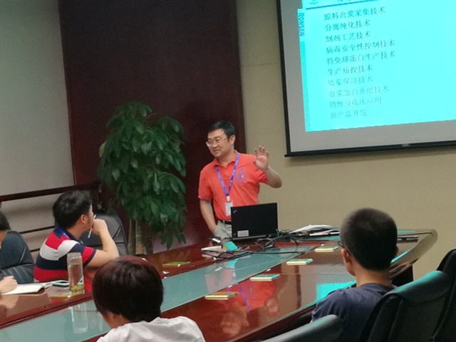 吳強(qiáng)老師以深入淺出的講解方式,從原料血漿采集技術(shù)到質(zhì)量保證技術(shù)共十個(gè)版塊為大家逐一梳理了血液制品的生產(chǎn)過(guò)程,讓廣大青年團(tuán)員對(duì)血制產(chǎn)品生產(chǎn)工藝流程有了系統(tǒng)、全面的認(rèn)識(shí)。此次培訓(xùn),吳強(qiáng)老師還將公司未來(lái)的發(fā)展規(guī)劃和目前新產(chǎn)品的研發(fā)進(jìn)度一一分享給了在座的青年團(tuán)員們,使大家對(duì)公司的快速發(fā)展充滿了信心,同時(shí)也激發(fā)了大家愛(ài)崗敬業(yè)的工作熱情。